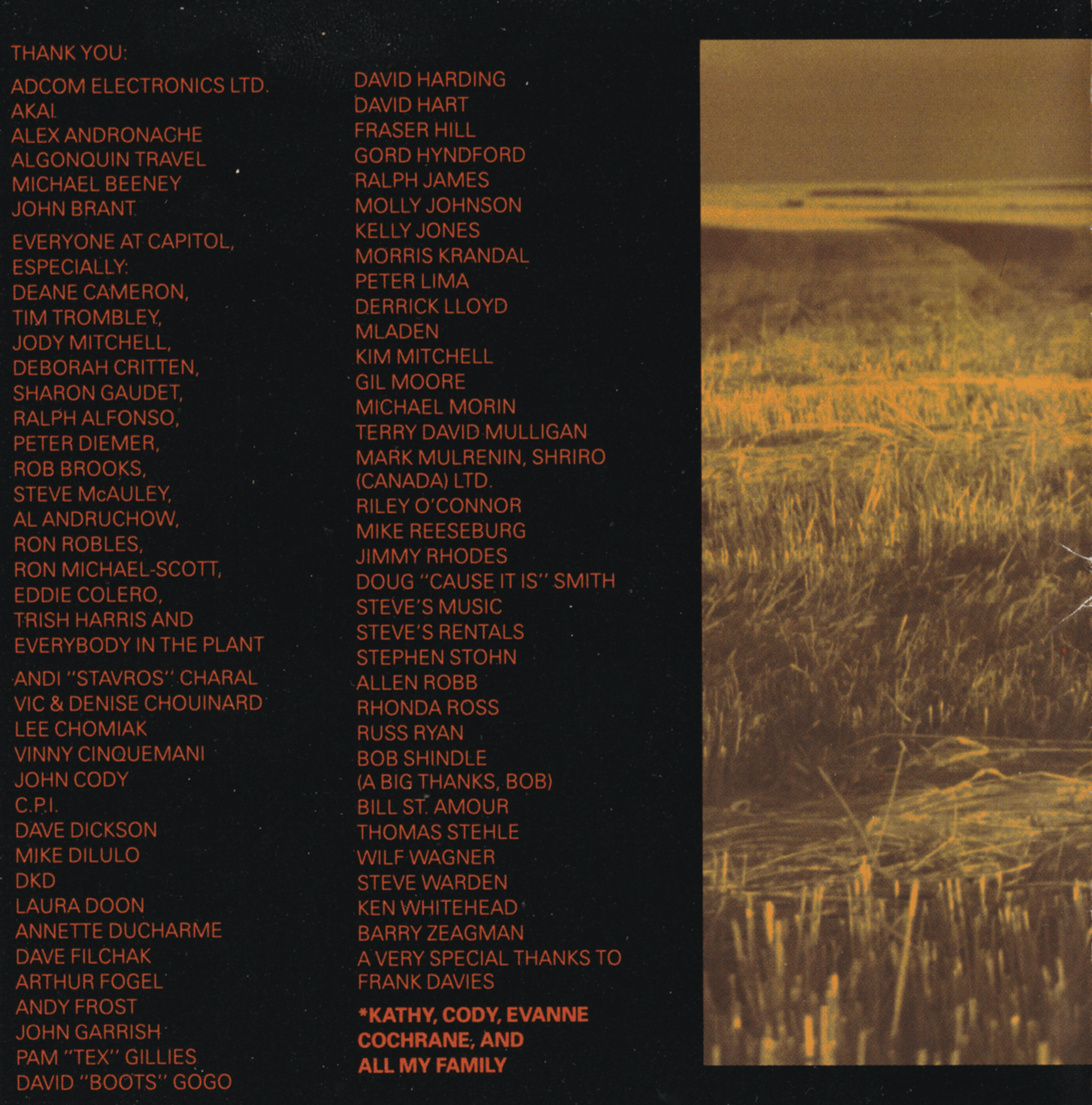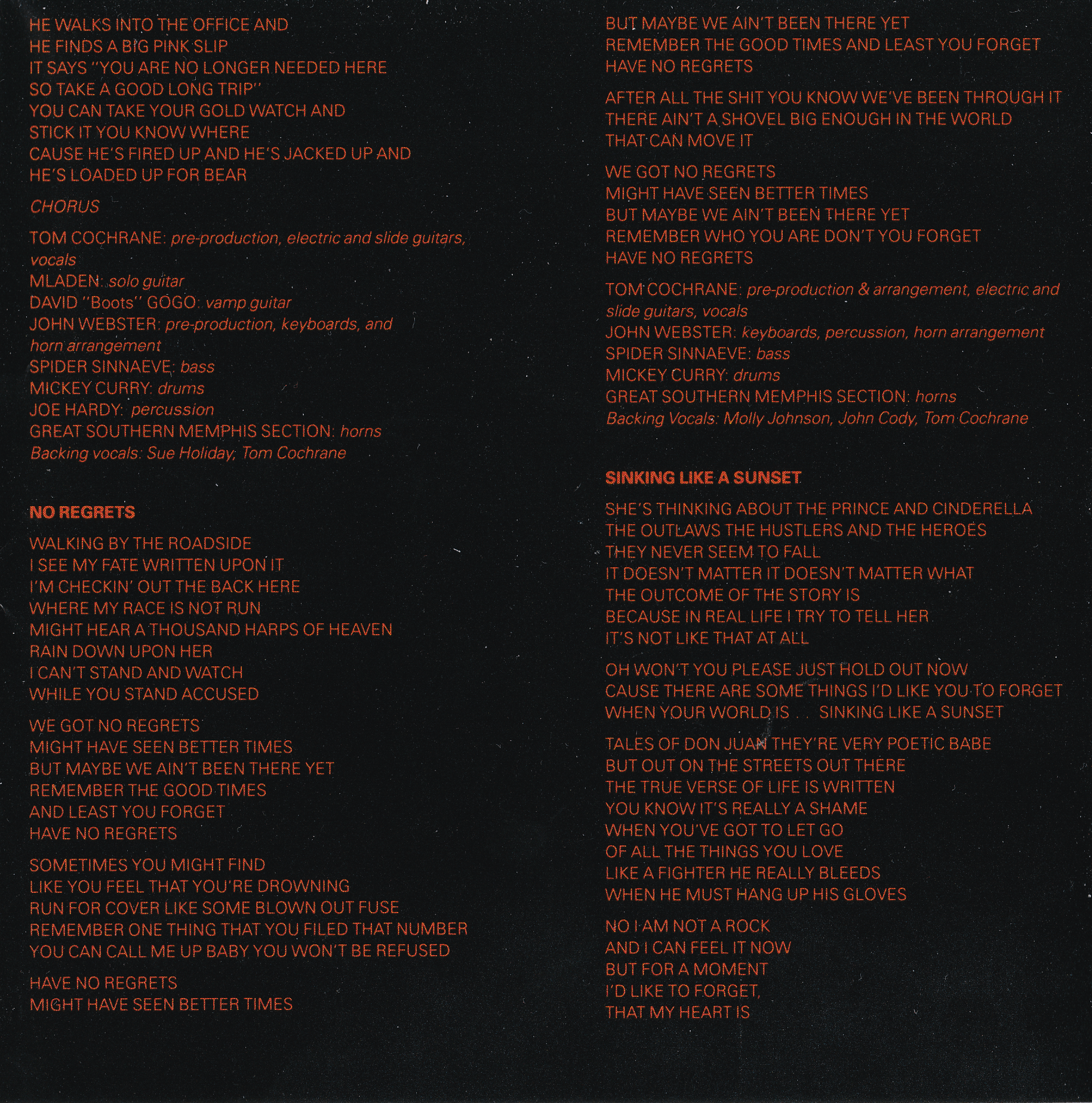Backing Vocals: Kathy Cochrane, John Cody, Brian Carson, Tom Cochrane